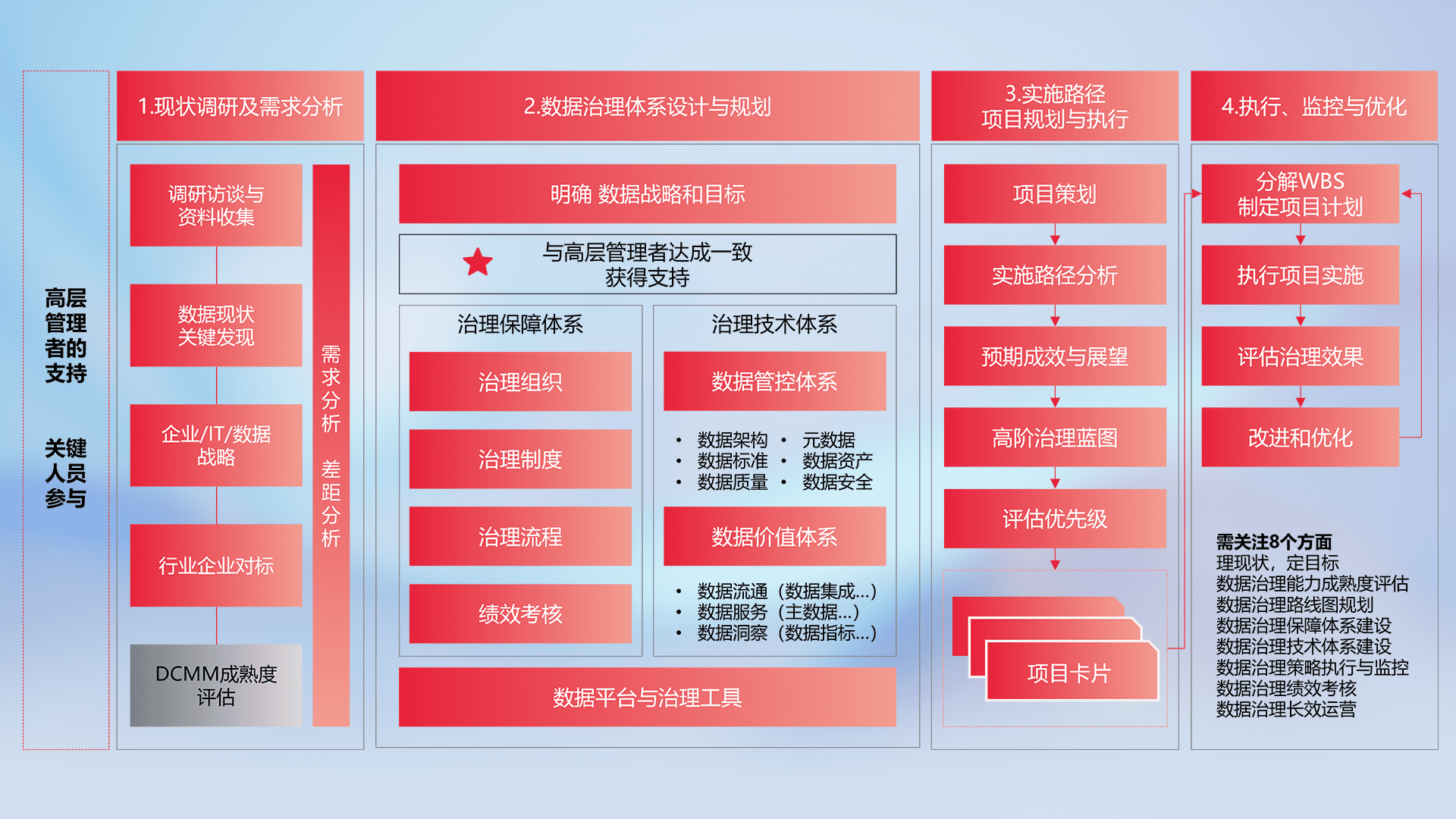 制定并执行统一的数据标准,,规范数据定义和格式,,,,消除冗余和不一致性,,实现跨部门和跨系统的数据一致性,,,为企业提供标准化的数据基础。。。。