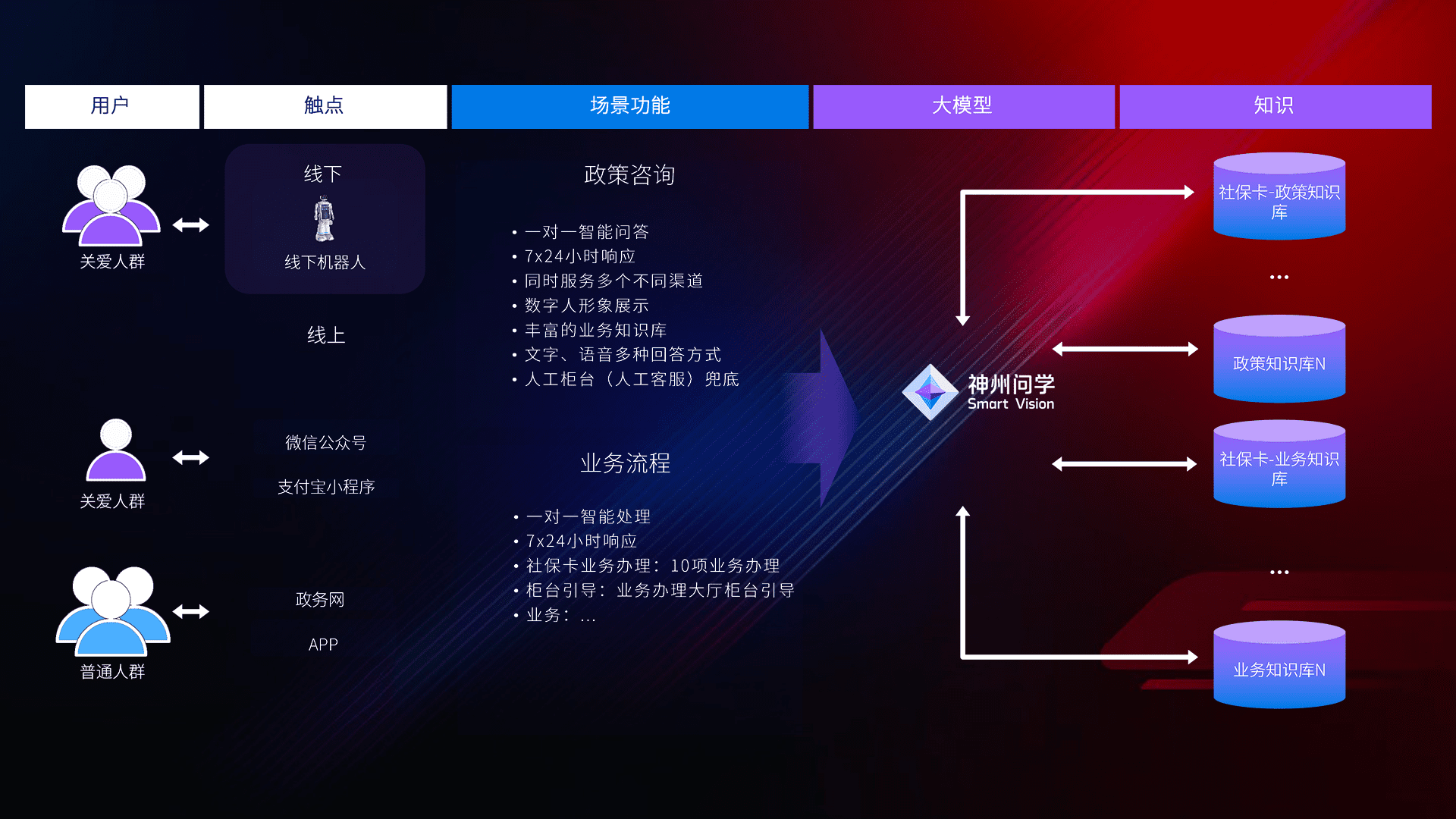 在服务大厅部署客服机器人,,,在线上应用和小程序配置客服数字人,,,724小时为群众解答常规问题,,,客服机器人无法处理的,,,转现场人工处理。。